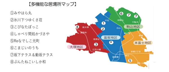 多機能な居場所ができるようなったのは、空き家や空きスペースを活用して先駆的に居場所づくりを行っていた住民活動がきっかけでした。文京区は、いわゆる地区社協による活動がなく、地域住民が自主的に行っていた活動に対して、社協としてどのように関わっていくかを、CSWの配置を進める中で検討していった経緯があります。そうした地域の拠点を広げていきたいという思いがある一方、拠点を維持していくためには家賃や光熱水費などの課題がありました。これに対し、区から国の地域力強化推進事業の活用を提案されたことをきっかけに、各地区に常設の拠点を整備していく流れが生まれました。
