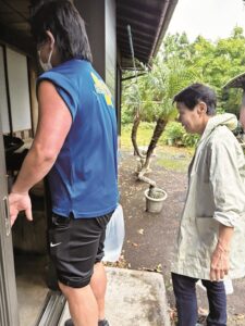 11月17日からはDWAT*が八丈島での活動を開始し、八丈町役場で把握している罹災証明発行世帯の情報をもとに個別世帯を訪問して生活・介護ニーズの聞き取りをしました。DWATの取組みについても、社協と同じ場所に事務拠点を置くように調整し、毎日、社協、役場、保健所と情報共有を行いながら、取組みをすすめました。