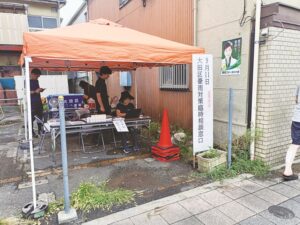 また、隣接する大田区では、行政が被害の最も大きかった東雪谷地区内に出張窓口(簡易テント)を設け、住民からの相談にあたっていました。社会福祉協議会でも被災者の支援活動を行うため、行政のテント内に席を設け、被災者からの困りごとを地域福祉コーディネーターがアウトリーチして聞き取りました。被災者からは「罹災証明のことで区役所に行かなければならないことを知らなかった」という声や「隣近所で対応するので大丈夫」という支援を遠慮する声も聞かれました。(社福)大田区社協の廣瀬元気さんは「ウェブサイトに載せていた電話番号にはほとんど電話がなかったが、現場に出ると住民から助けてほしいという声が多く入った」と話します。
