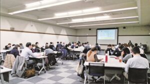 後半は、グループに分かれて、自地区で取り組んでいる内容やフォローアップ支援を行う中で感じたこと等を共有しながら、来年度に向けて取組みの参考やヒントとなる情報交換をしています。
